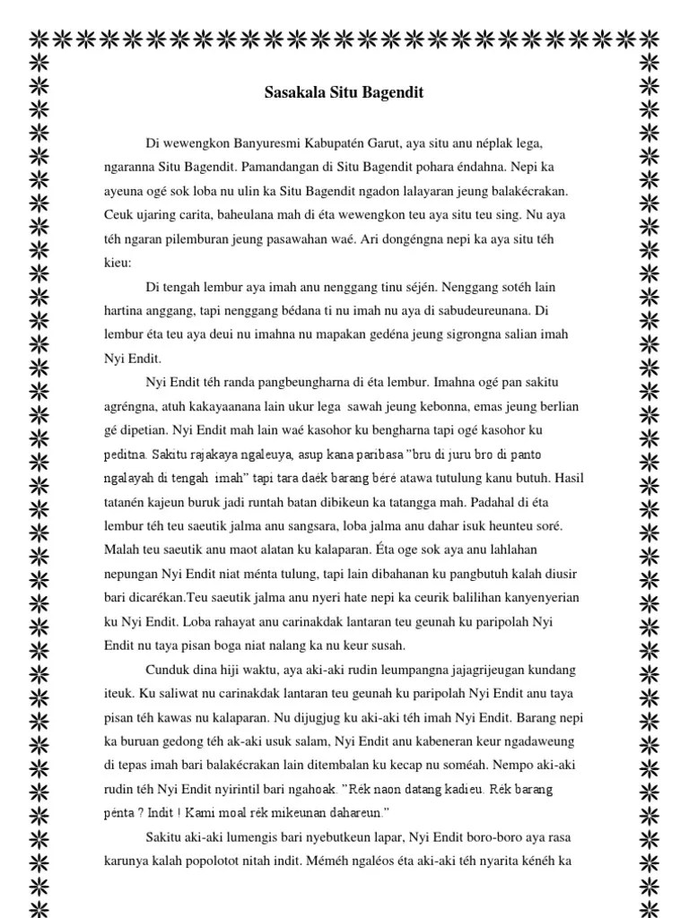 Contoh Carita Babad Bahasa Sunda Situ Bagendit - Tidai Diperdagangkan Untijk Umum Ensi Lopedi Sastra Sunda Yus Rusyana Iskandarwassid Wahyu Wibisana Hsa Pdf Download Gratis - 15 contoh carita pantun sunda oktober 31 2020 contoh carita pantun lutung kasarung bahasa sunda oktober 31 2020.. Dongeng sunda sasakala situ bagendit kesimpulan jeung ringkasana. Conto carita pamuk di wewengkon sunda bisa ditingali dina carita . Ieu di handap nu kaasup kana conto carita babad nyaéta. Contoh naskah drama basa sunda bahasa sunda. Kumpulan contoh carita babad cirebon bahasa sunda file.